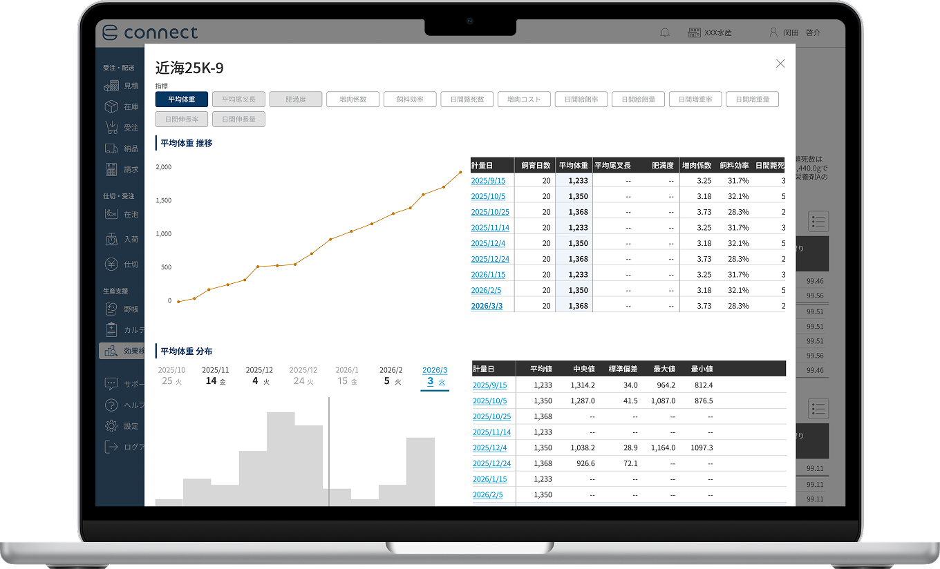 「uwotech(うおてっく)」は、養殖現場の日々の飼育・出荷データを横断的に分析し、養殖経営の経営インサイトをあぶりだすクラウド型養殖管理ソフトです。
